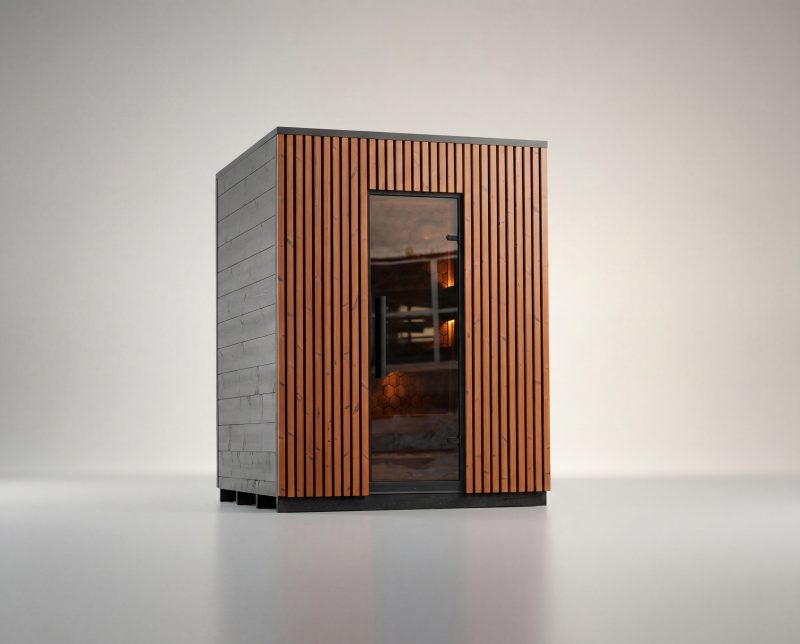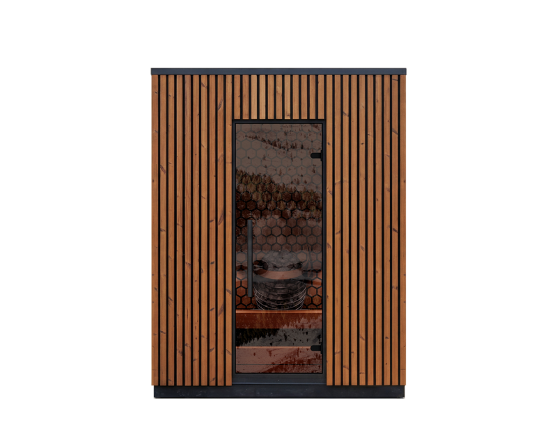 Viva sameinar tímalaust útlit og endingargóð efni. 40 mm Thermowood veggir veita styrk, einangrun og náttúrulega hlýju í útliti. Lóðréttir listar á framhlið skapa fallegt mynstur og léttleika sem grípur augað – hvort sem sánan stendur á palli, mitt í grónum garði eða út í skógi.